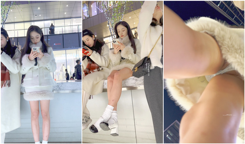 【KFC】极品美女雪天光腿被摄影师各种拍❤️白色内微透黑森林