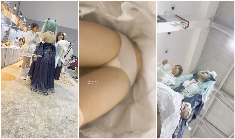 【KFC】学生妹COSER玩手机❤️蓬蓬裙遮住后面忽略前面微透黑白内